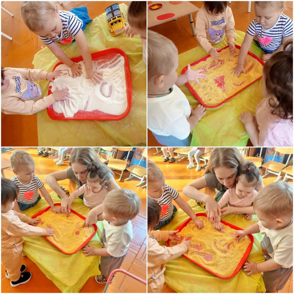 Они их рассмотрели и изучили на ощупь. Порисовали рисунки на крупе.