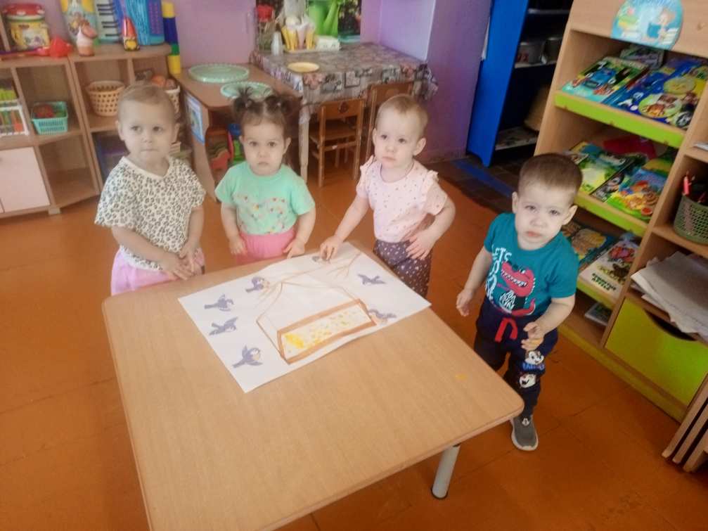 Для детей 1 ранней группы была организована продуктивная деятельность: малыши с помощью своих пальцев рисовали зернышки для синичек. Перед этим они внимательно рассматривали этих птичек на картинках.