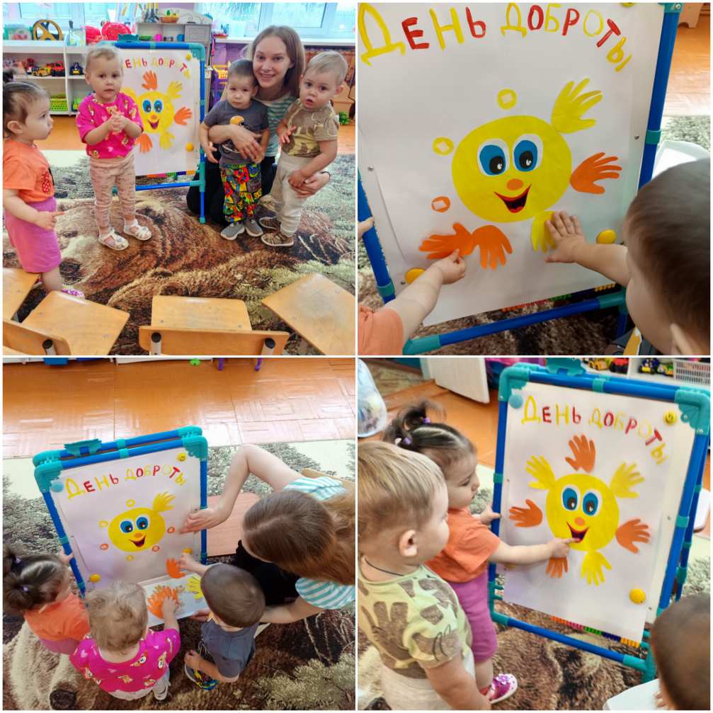 В 1 группе раннего возраста было создано яркое, доброе солнышко. Каждый его лучик - ручки наших добрых малышей.