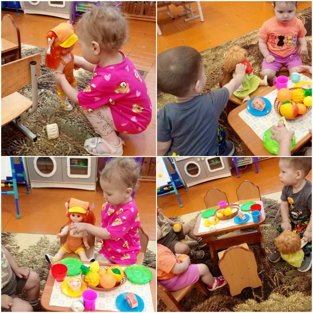 Дети пригласили в гости своих подружек - кукол Катю и Таню.