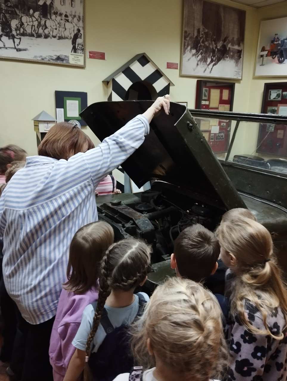 Ребят очень заинтересовала необычная коллекция моделей автомобилей и мотоциклов. Особенно им понравился автомобиль Ford 1942 года выпуска. Ребята смогли увидеть интересные экспонаты, возраст некоторых из них приближается к 100 годам. Также экскурсовод Галина Александровна рассказала о нюансах работы госавтоинспектора в прошлом и в настоящем, об особенностях обмундирования и условиях несения службы на протяжении десятилетий существования ведомства. В заключение участникам экскурсии предложили сделать фотографии на память на знаменитом автомобиле.