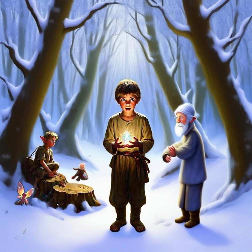 Однажды зимним вечером, когда снежинки кружились в танце над заснеженными деревьями, маленький мальчик по имени Миша отправился гулять в волшебный лес. Родители давно предупреждали Мишу, что зимой в лесу опасно оставаться одному, но любопытство оказалось сильнее страха.