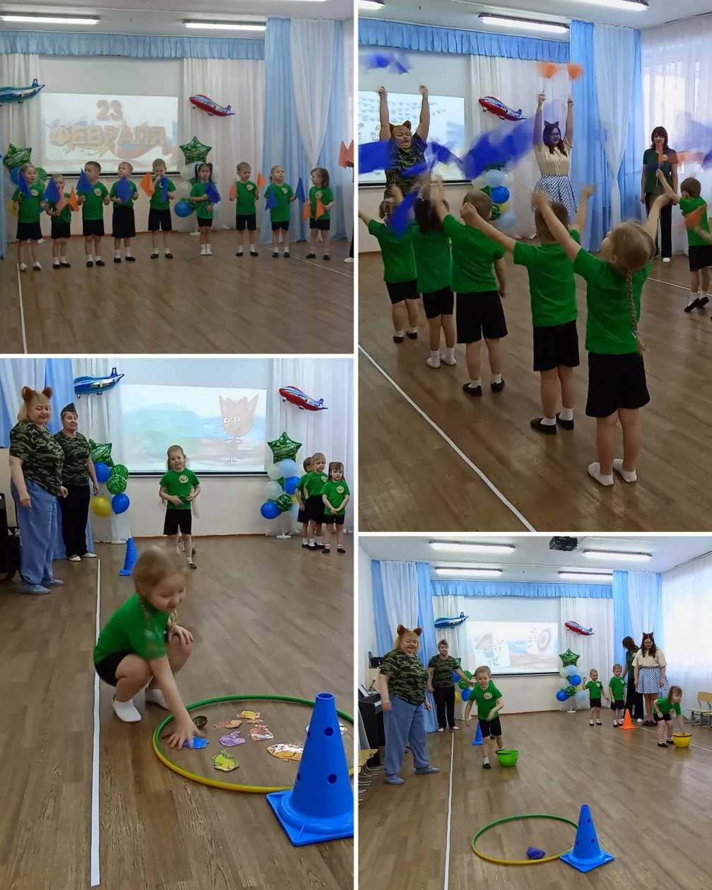 В нашей группе состоялось тематическое занятие, посвящённое 23 февраля. В гости к детям пришли известные и любимые герои из мультфильма "Три кота":Коржик и Карамелька: И тут началось самое интересное...