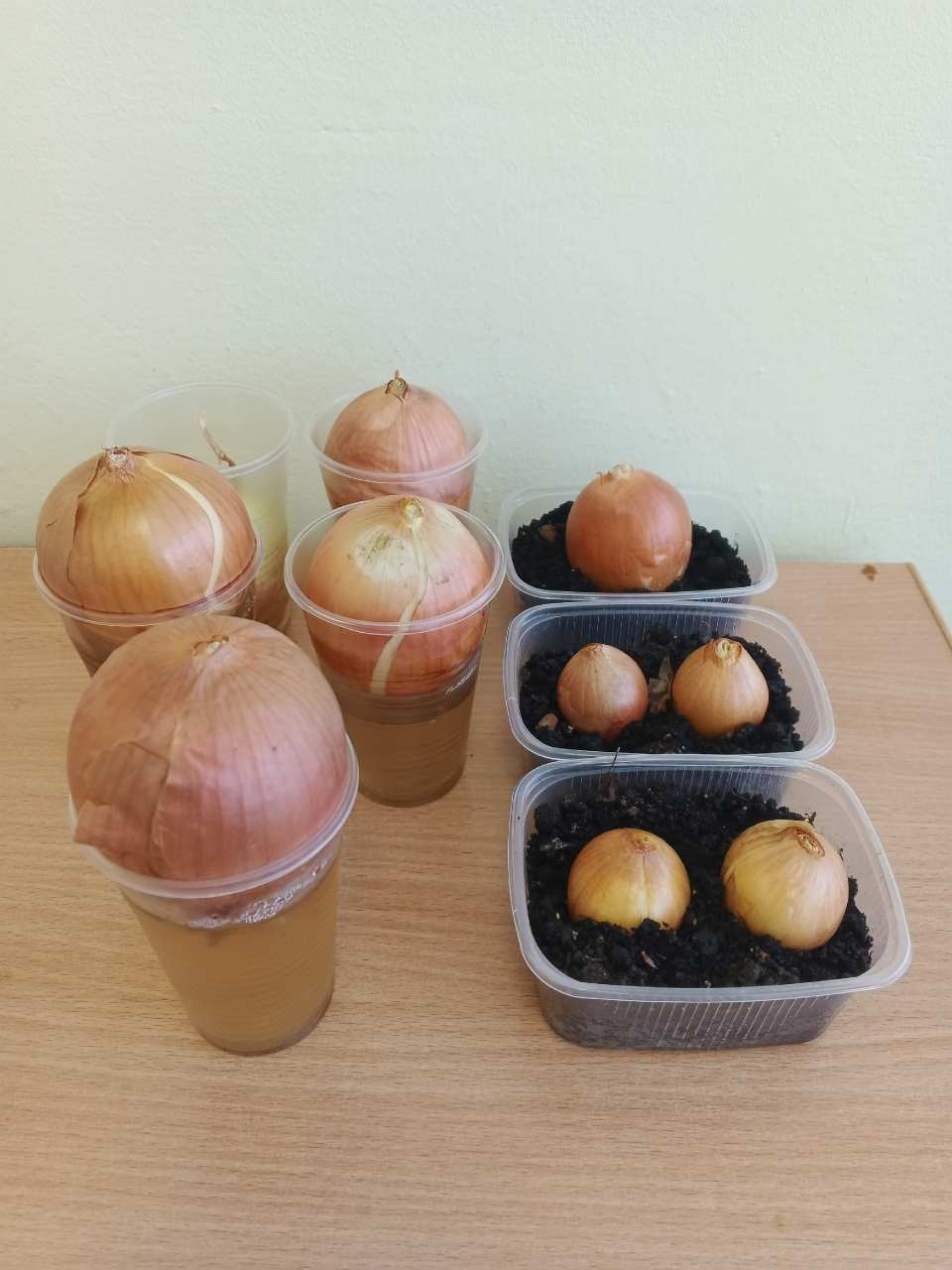 После этого, мы сравнили и сделали вывод, что в земле лук прорастает быстрее, чем в стакане с водой.