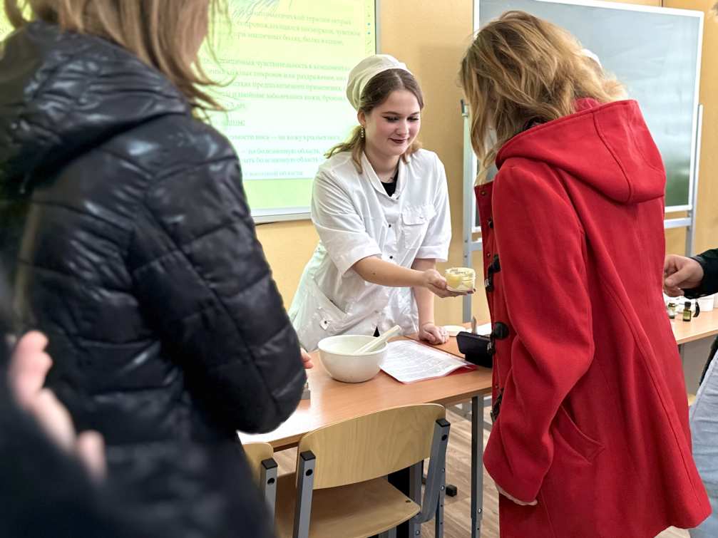 В рамках дня открытых дверей в ГБПОУ «Бердянский медицинский колледж» состоялся увлекательный мастер-класс по изготовлению мази «Противопростудной». Это мероприятие стало уникальной возможностью для абитуриентов и гостей колледжа погрузиться в практическую сторону специальности «Фармация» и оценить, насколько интересна и важна работа фармацевта.