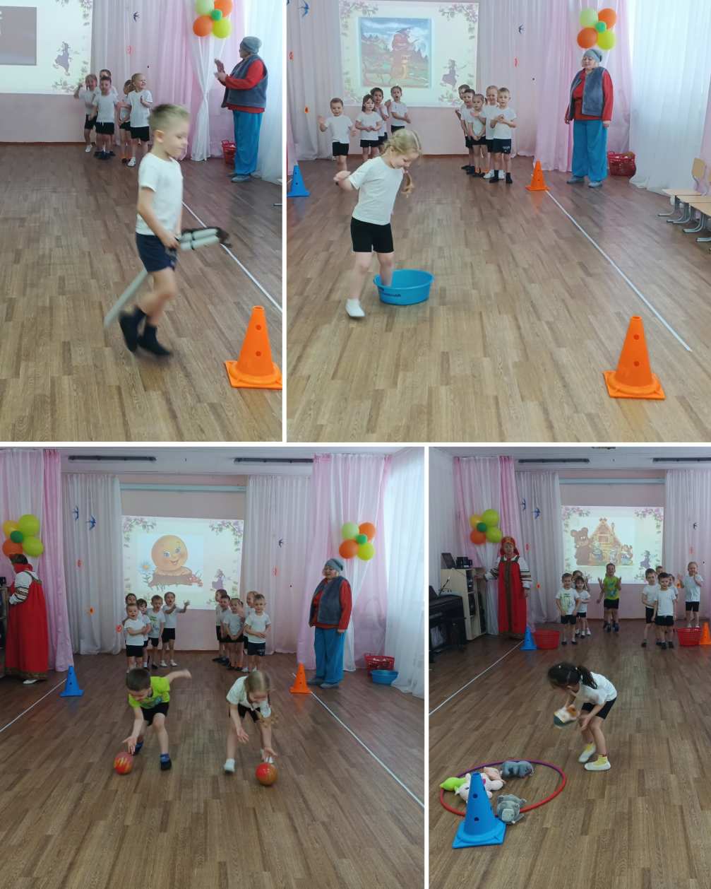 , летали на ступе, катали колобка.