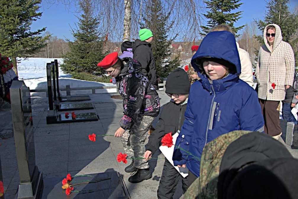 Минутой молчания почтили память погибших в годы Великой Отечественной войны и возложили алые гвоздики к Мемориальной стене на братские захоронения воинов, погибших в 1941 году в бою за деревню Леоново — населенный пункт воинской доблести.