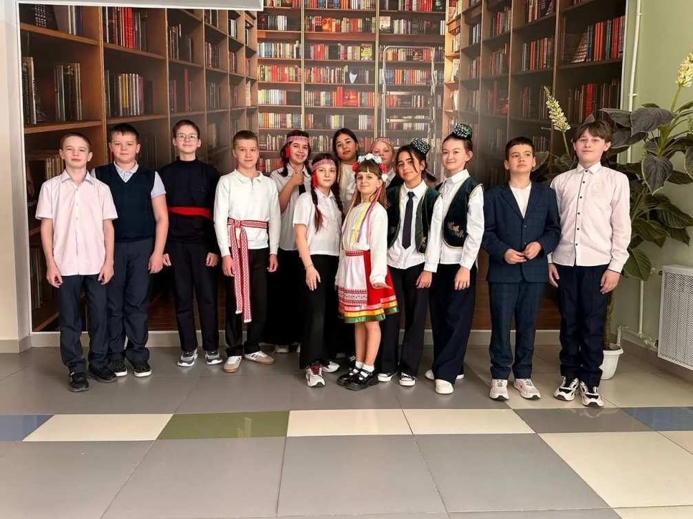 УЧЕНИКИ 5 Е КЛАССА: тоже поучаствовали в акции и нарядились в национальные костюмы. Перед ними на сцене выступали местные народные ансамбли. Концерт получился ярким, эффектным, запоминающимся. От этого дня остались положительные эмоции и яркие фото.