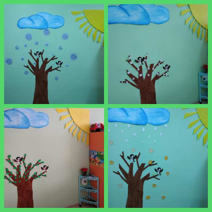 Уголок погоды предназначен для малышей ясельной группы, выполнен из потолочной плитки и крепится на двусторонний скотч. Все максимально безопасно, ярко и наглядно. Детям очень нравится — можно смотреть, можно трогать! Идея заключается в том, чтобы уголок природы видоизменялся в зависимости от времени года (осень, зима, весна, лето). P.S. Смотри фото!
