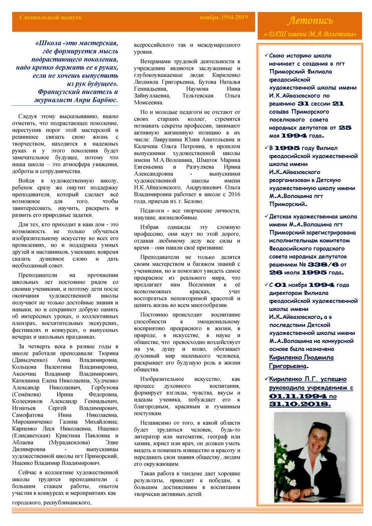 Фото газетных страниц к юбилейной дате подготовила экс-директор, преподаватель школы Кириленко Людмила Григорьевна