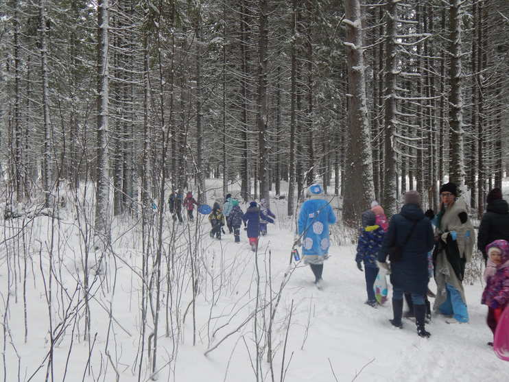 Ребята ждали и готовились к этому мероприятию. Изготовили елочные украшения для лесной красавицы. И вот этот день настал! С санками, ледянками, самокатами ребята и их родители прибыли в назначенное время к Березовой роще! У самого входа в лес их встретила красавица-снежинка, которая потеряла свою сестрицу Зимушку. Наши добрые и отзывчивые ребята с песнями и веселым настроением отправились на поиски Зимы вместе со Снежинкой, но на пути они встретили вредную Бабу-Ягу и Лешего! Не испугались ребята - поиграли и повеселились они с жителями сказочного леса и позвали их путешествовать вместе с ними! Среди красивых елочек наконец-то встретили и Зимушку-зиму! Украсили вместе с ней елку, спели новогоднюю песенку и конечно сфотографировались на память.