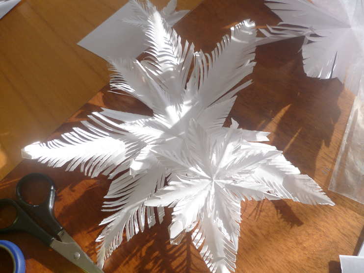 Схему создания снежинок можно найти на страницах интернета. Эти снежинки помогали делать дети 7-8 лет.