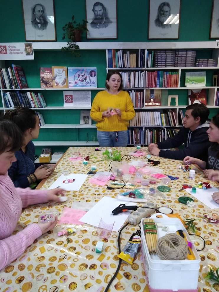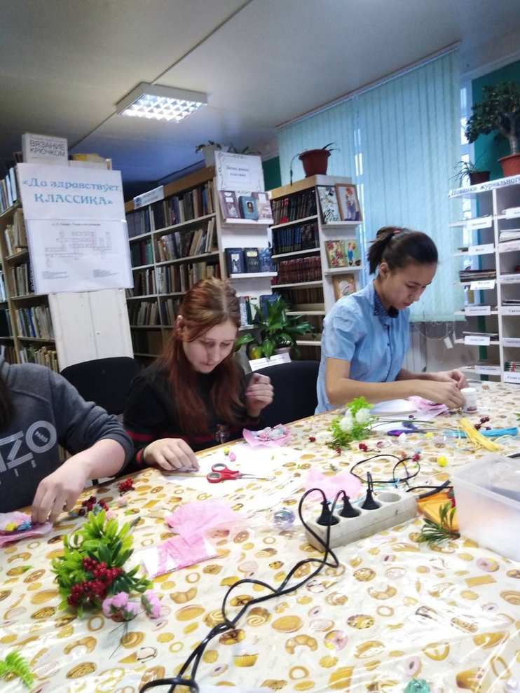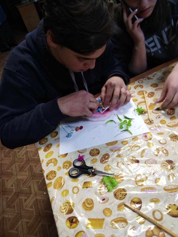Мастер-класс был проведён для учащихся 9-х классов. Участники под руководством преподавателя выполнили флористические магниты, которые послужили подарком для их мам.