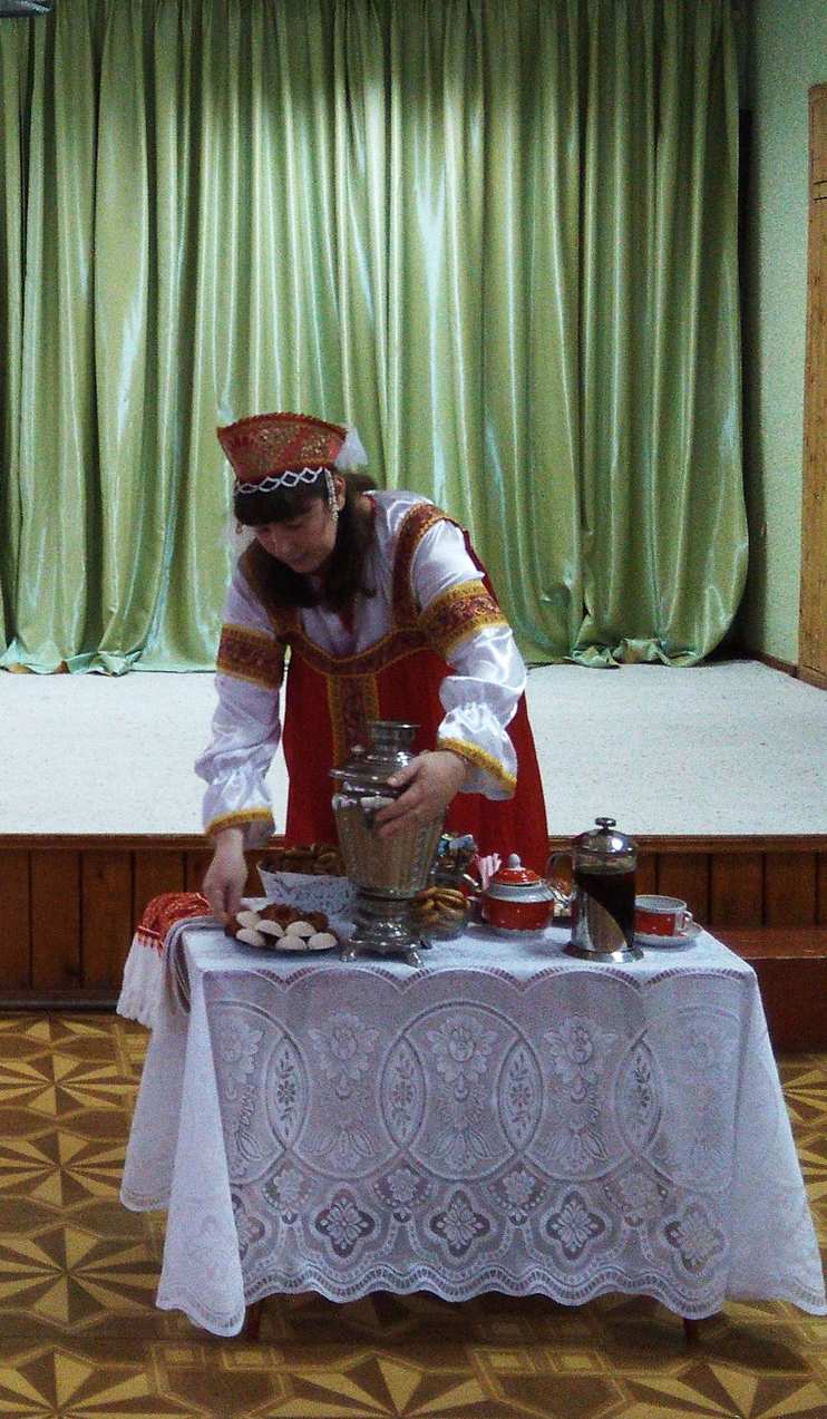 Вели беседы «Откуда чай к нам пришёл», о традициях чаепития в разных странах, отгадывали загадки, пели «чайные частушки». Хозяйка посиделок показала, как накрывали стол на Руси и заваривали чай.