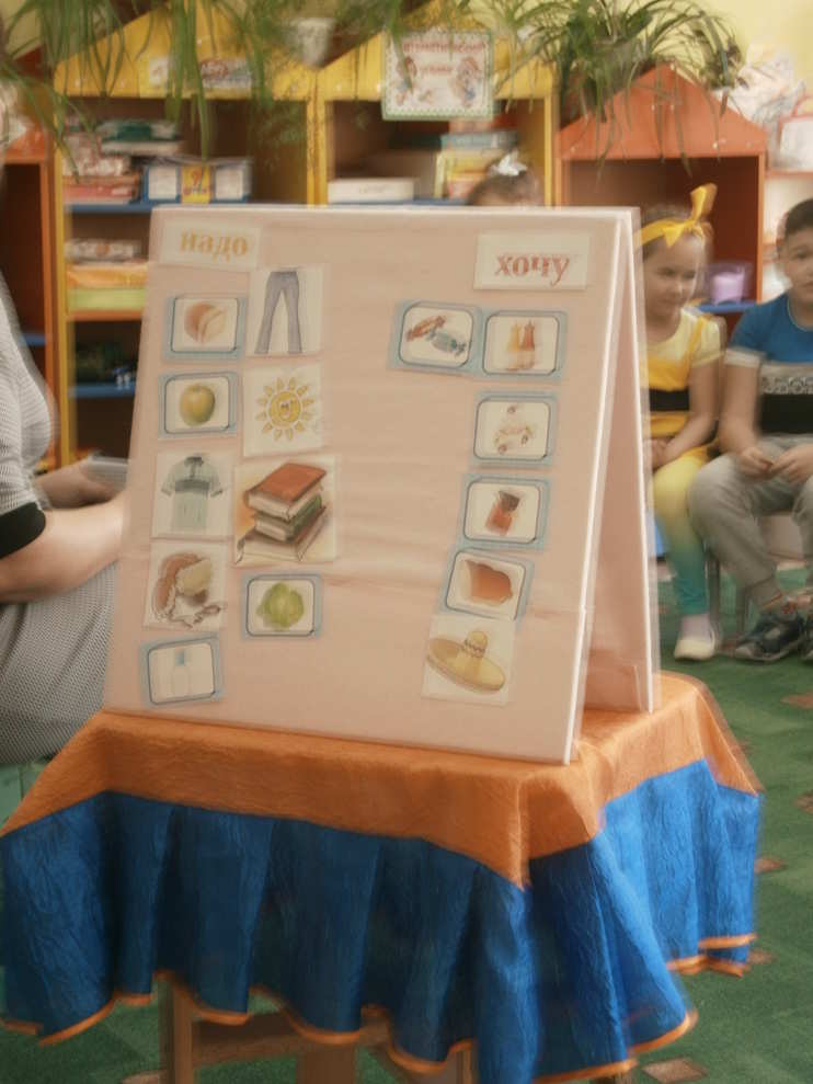 Пазл 4. Воспитатель: У каждого человека есть потребности. Ребята, напомните, что такое потребности? Это то, что необходимо, без чего нельзя обойтись. Важные потребности для жизни – это потребности «надо», а к которым надо стремиться – потребности «хочу». Надо уметь выбирать то, что тебе нужно больше всего. Сейчас мы поиграем в игру «Хочу-Надо». Воспитатель демонстрирует картинки с изображением: вода, таблетки, мороженое, букварь, удочки, солнце и т. д. – необходимо разделить на группы «Хочу» и «Надо».