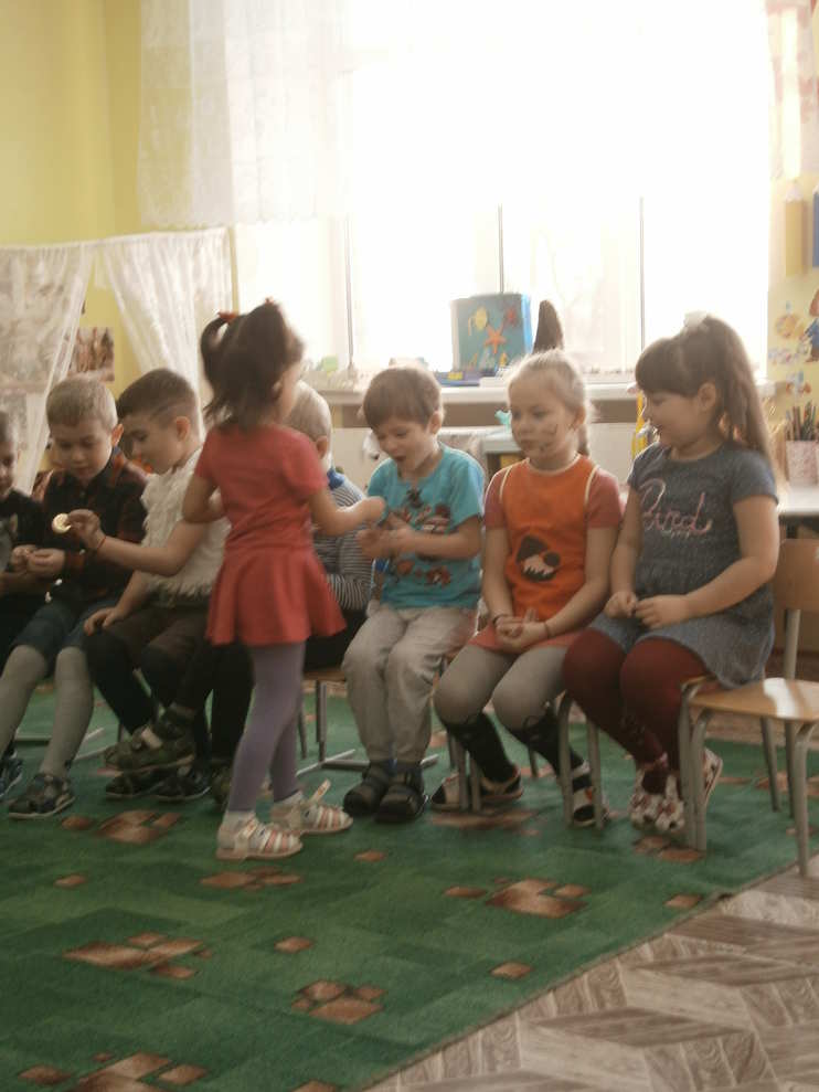 Воспитатель: Ну, а нам пора отправляться в детский сад. Ну а чтобы вернуться в детский сад, закрываем глаза и повторяем за мной: «Вокруг себя повернись и в детском саду очутись».