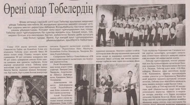 4 февраля 1928 года протоколом общего собрания Казахского Сельского Совета (в то время с. Тобелер относился к Казахскому Сельскому совету) рассмотрен вопрос о сборе самообложения с населения Сельского совета в сумме 4650 рублей для строительства школ в с. Тобелер и в с. Теленгит-Сортогой.