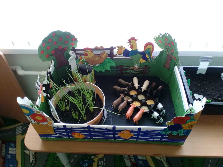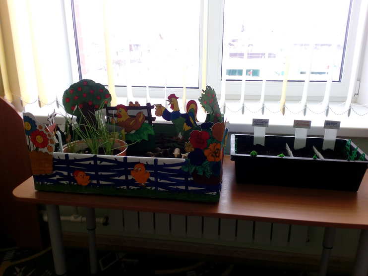 Каждый год в группе на подоконнике вместе с детьми мы сажаем огород. В этом году мы тоже решили немного пофантазировать. Созданием данного огорода занимались все дети и воспитатели. Было интересно и увлекательно наблюдать, как в нашей группе растут и радуют нас посаженные своими руками лук, салат, петрушка, укроп, перец.