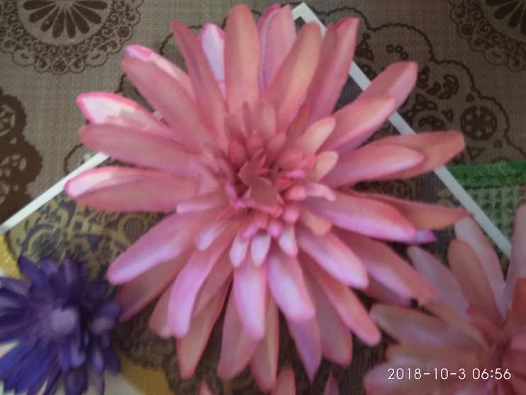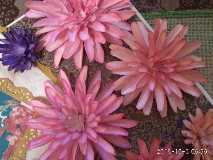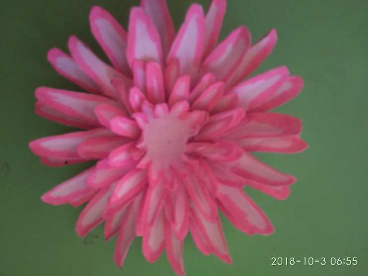 Если хотите сделать цветок пышнее, можно использовать по два цветка. 3. Вырезаем. 4. Обводим по контуру яркими фломастерами (лучше маркерами). Можно раскрасить акварелью. 5. Опускаем цветы в воду на полминуты (можно чуть меньше). 6. Вынув из воды, кладем на губку и продавливаем серединку круглой частью карандаша или ручки. 7. Просушиваем. 8. Соединяем детали, склеивая их в серединке.