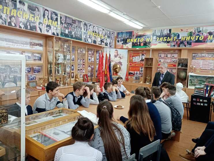 Сегодня мы с учениками 7 "А" класса посетили школьный музей. Руководитель школьного музея Хорев В. С. рассказал о военной Блокаде города Ленинграда, о "дороге жизни", о дневнике Тани Савичевой.