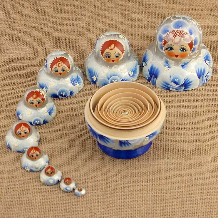 Русские матрёшки отличались не только по количеству кукол, которые вкладывались в одно изделие. Различными были изображаемые сюжеты и техники росписи.