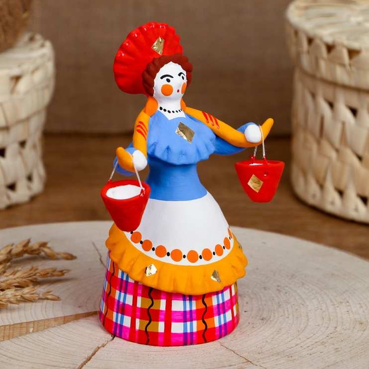 Яркий дымковский стиль легко узнаваем... Чаще всего мастера изготавливают игрушки в виде животных, водоносок, нянек с детьми, а самый узнаваемый образ — Барыня!..