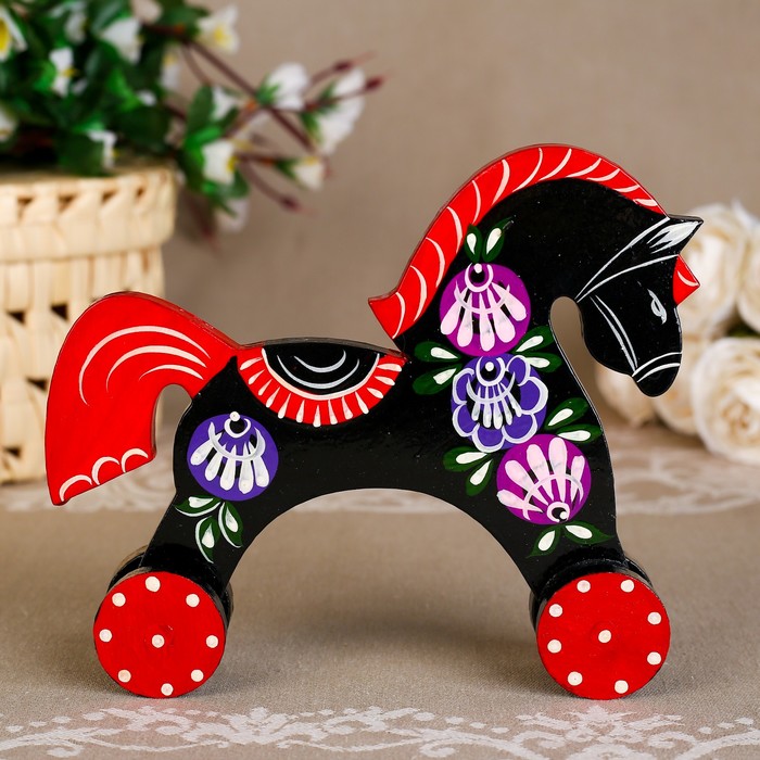 Отличительной цветовой особенностью городецкой росписи является преобладание красного, желтого, зеленого и черного.
