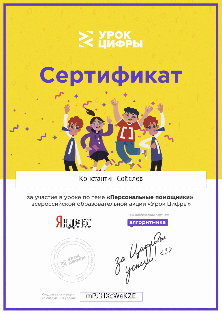 На уроке ребята просмотрели видеоролик, из которого узнали, как использовать персональных помощников в повседневной жизни, какими возможностями они обладают и какие технологии используются при их создании. Кроме этого, учащиеся успешно выполнили задания в онлайн-тренажёре и были награждены именными сертификатами за участие в акции.