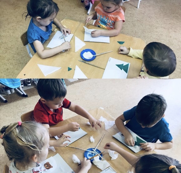 Воспитатель выдает каждому ребенку рисунок спящего в берлоге медвежонка, читая стихотворение И. Токмаковой: