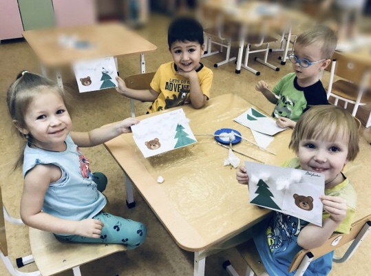 Наши снежинки всю землю укрыли снежным покрывалом. Тепло и уютно будет Мишке в берлоге, не страшны ему никакие морозы. А нам пора возвращаться в садик. Тихонечко занимайте места в автобусе, чтобы Мишку не разбудить. Я музыку тоже тихо включу. Готовы? Поехали!
