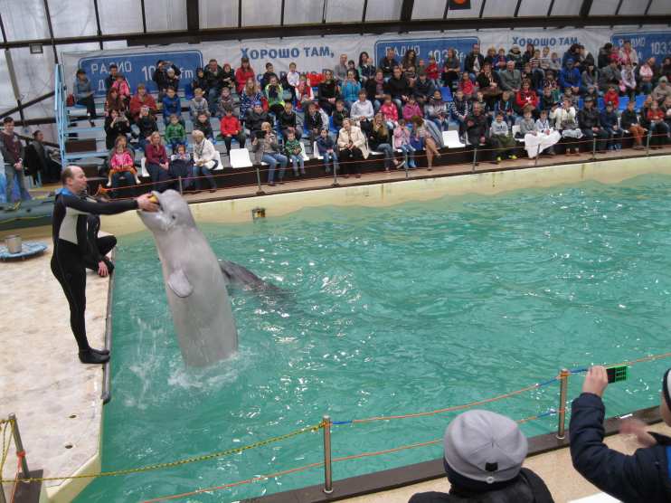 Дельфины умеют многое, они очень хорошие ученики. На представлении дельфины показывали синхронное плавание, играли в баскетбол, танцевали вальс парами, аплодировали зрителям, показывали акробатические трюки... Тренеры постоянно подкармливали их рыбой.