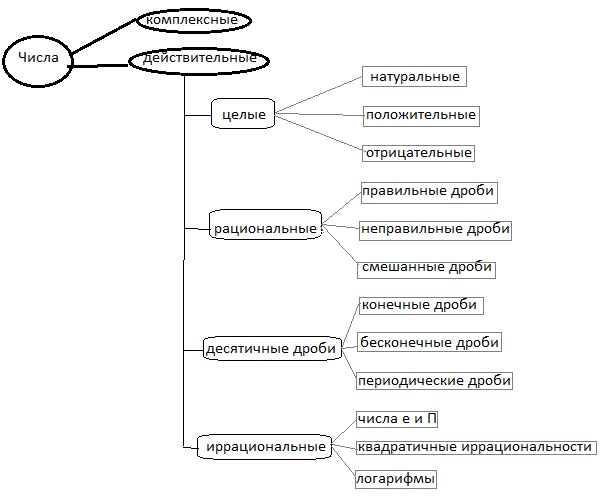 При этом нужно учитывать объем базовых знаний обучающихся в силу возрастных особенностей и предыдущей образовательной программы. Например, при составлении майнд мэпа по теме «Классификация чисел» пятиклассники обычно составляют такую карту (см. рисунок 2):