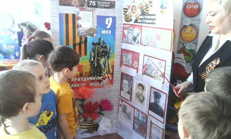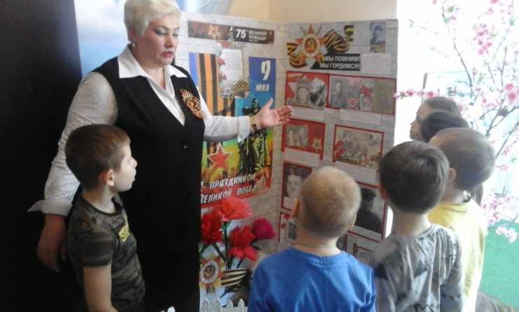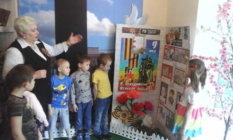 Форма работы с детьми: создание фото-выставки посвящённой празднованию 75-летию Великой Победы над фашизмом, беседы, просмотры презентаций, видеороликов, чтение и обсуждение литературных произведений, экскурсия в "Музей Славы", достопримечательностям города Саранска.
