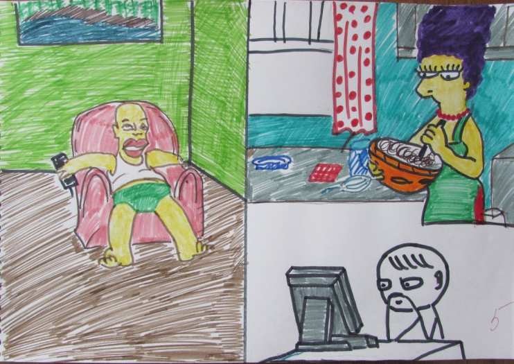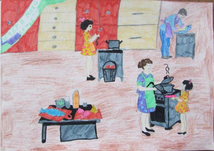 Отправной точкой в реализации проекта стало задание: нарисовать рисунок «Вечер в кругу семьи». Было просмотрено 40 работ: кто-то рисовал семью за совместным ужином, кто-то у телевизора, кто-то за настольной игрой, у кого-то члены семьи находились в разных комнатах и занимались своими делами (появилась даже семья Симпсонов). И только на одном из рисунков ребенок изобразил, как мама и сын проводят время за чтением книги. Это задание еще раз подтвердило, что организовать совместное чтение дома сегодня непросто. А ведь вечернее чтение всей семьей – это не тяжелая обязанность для родителей, а тихий остров, крепкий мостик между поколениями, который мы строим вместе с нашими детьми.