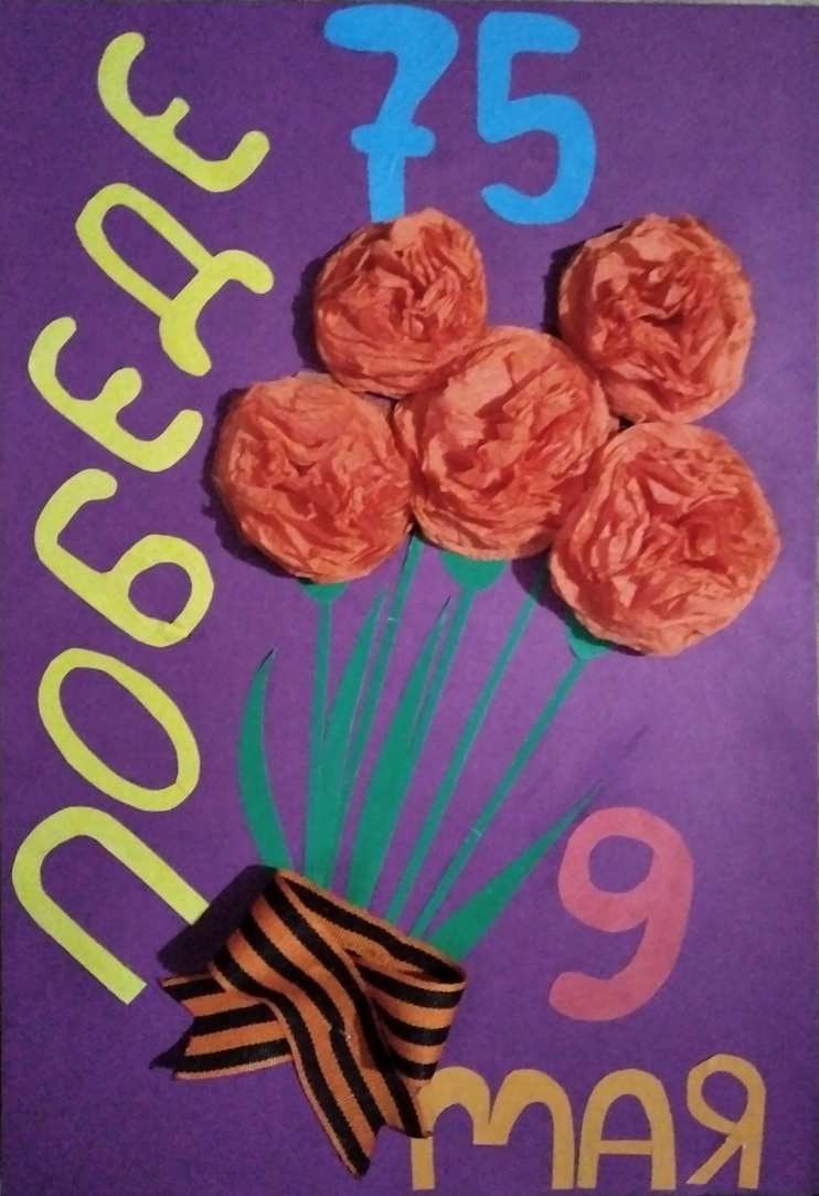 Полина вместе с родителем-педагогом Грунской Н.В. создали поделку – открытку из цветной бумаги «Победе - 75».