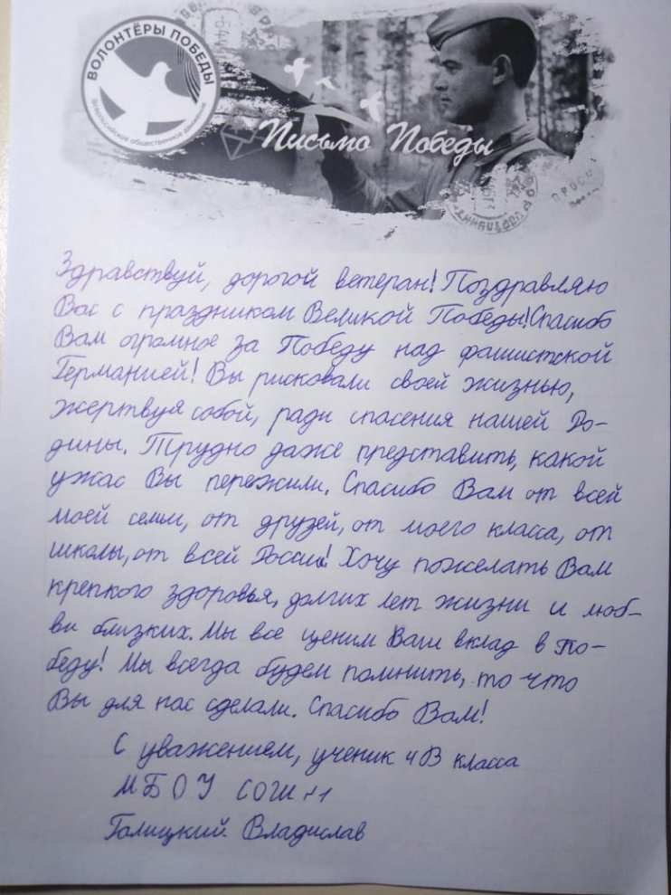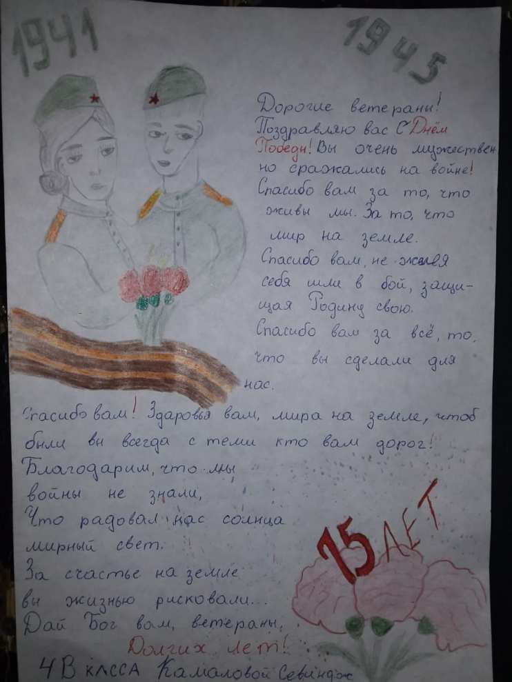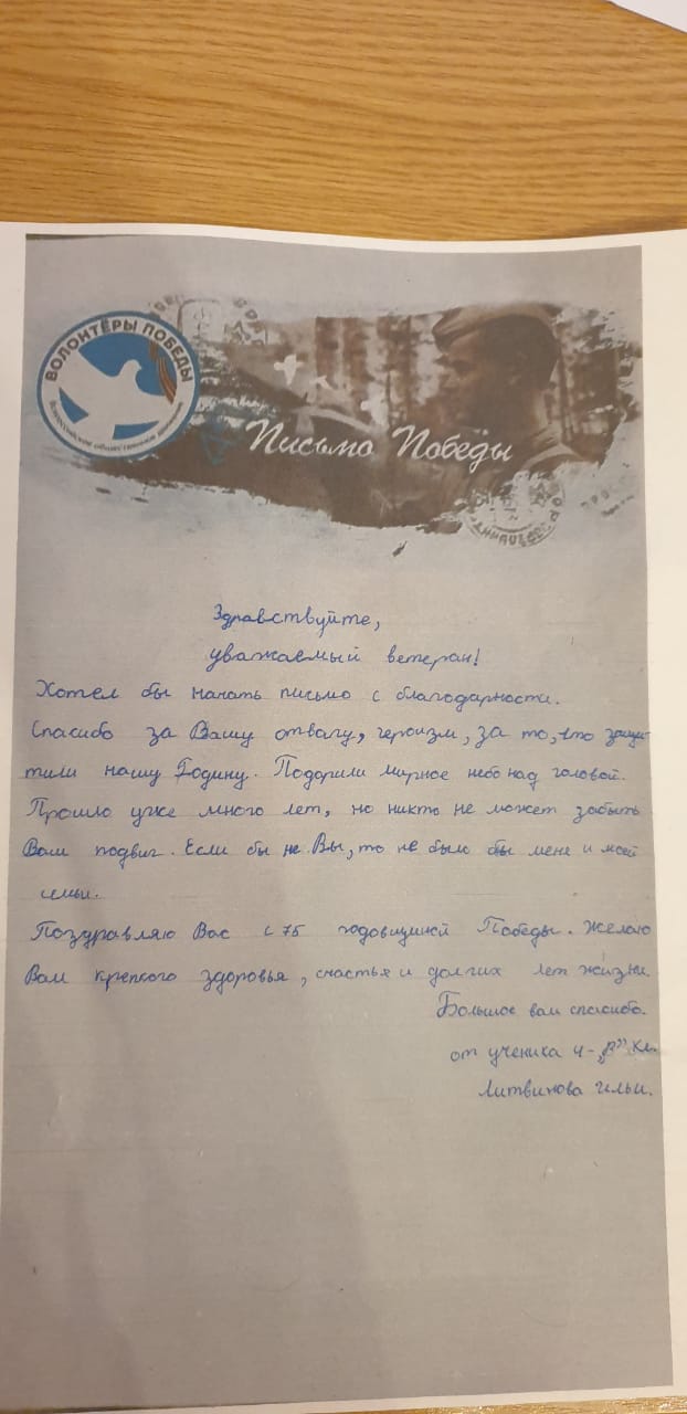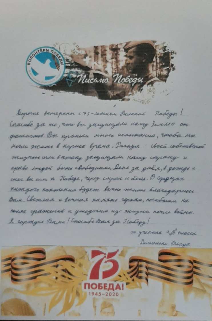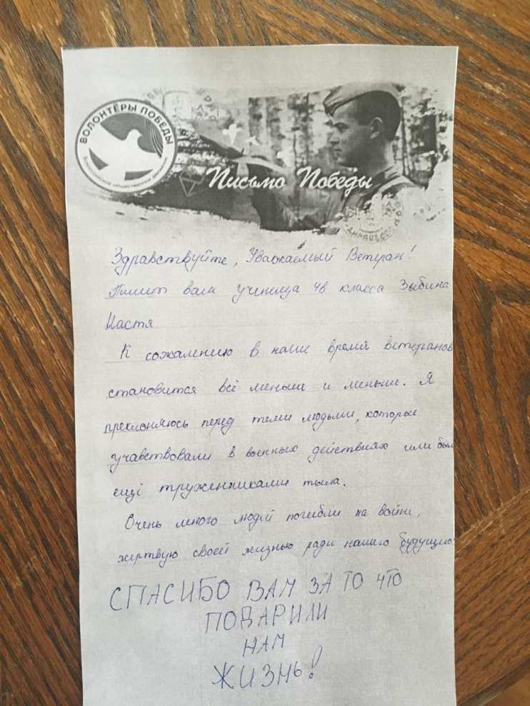 Добрый день! Спешу поделиться! В преддверии 75-летия Великой Победы мы с моими учащимися приняли активное участие во Всероссийской акции "Письмо Победы". Ее девиз – «Скажи спасибо лично». Важно, что все мероприятия объединяют людей разных поколений, создают общие интересы. Ниже небольшой фотоотчёт.