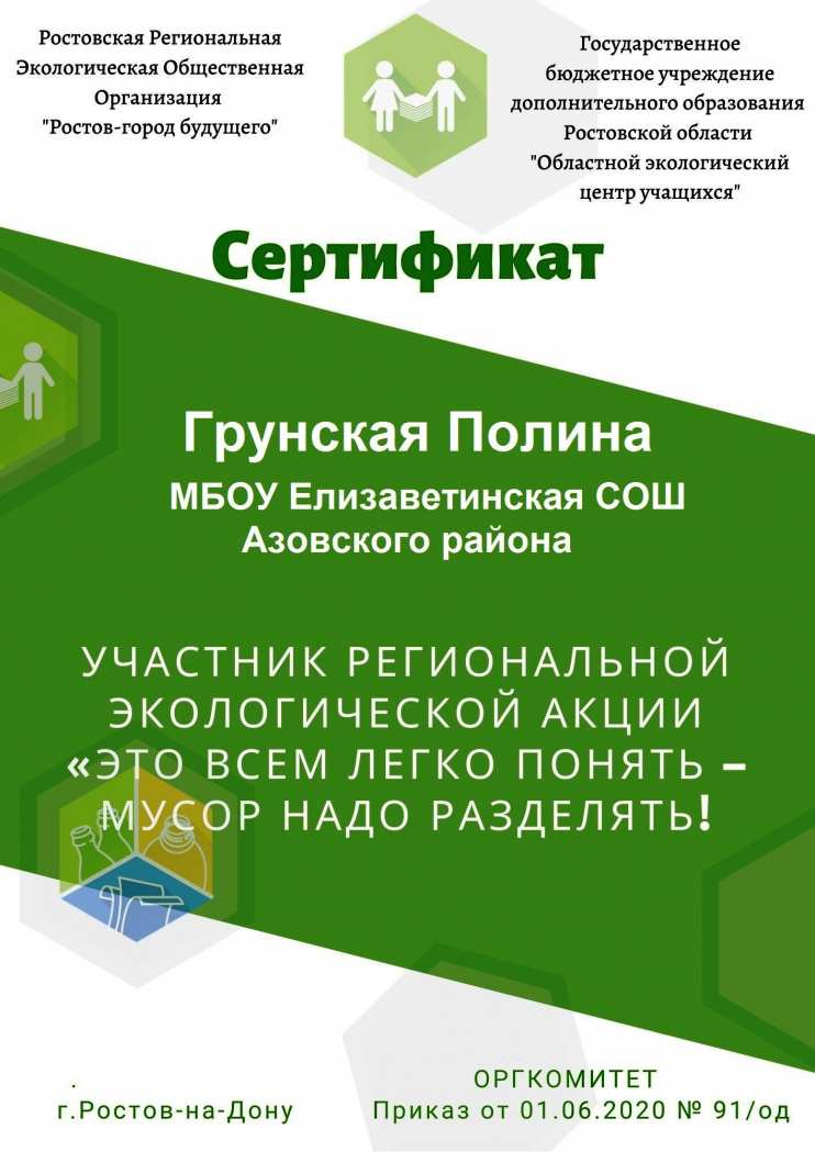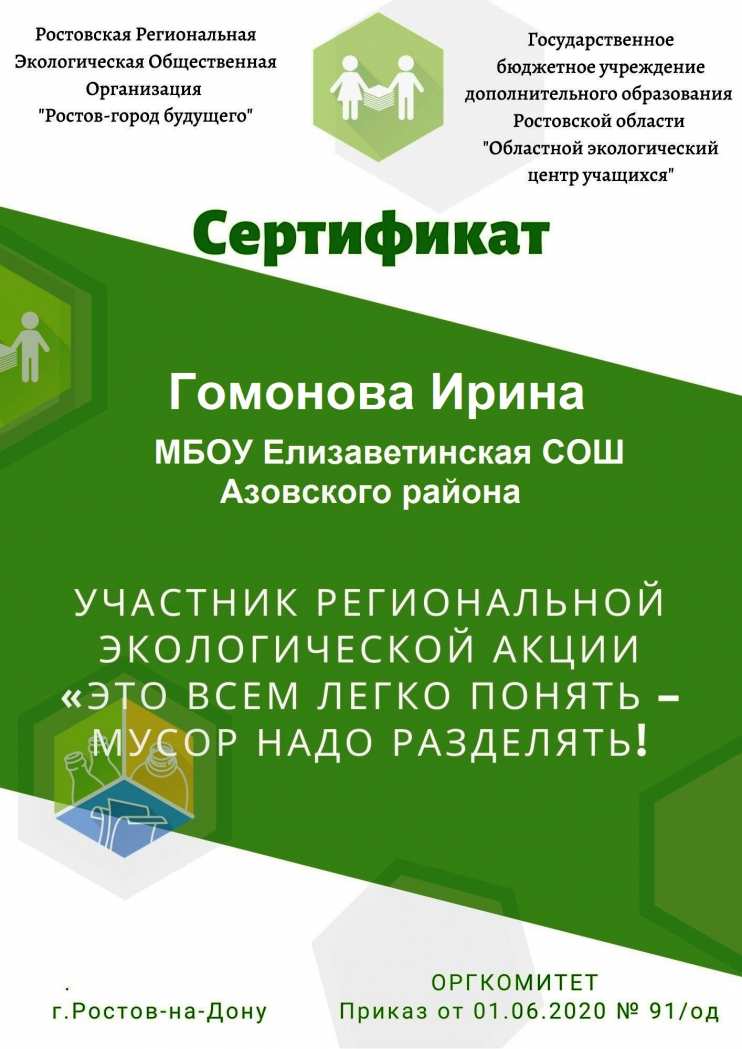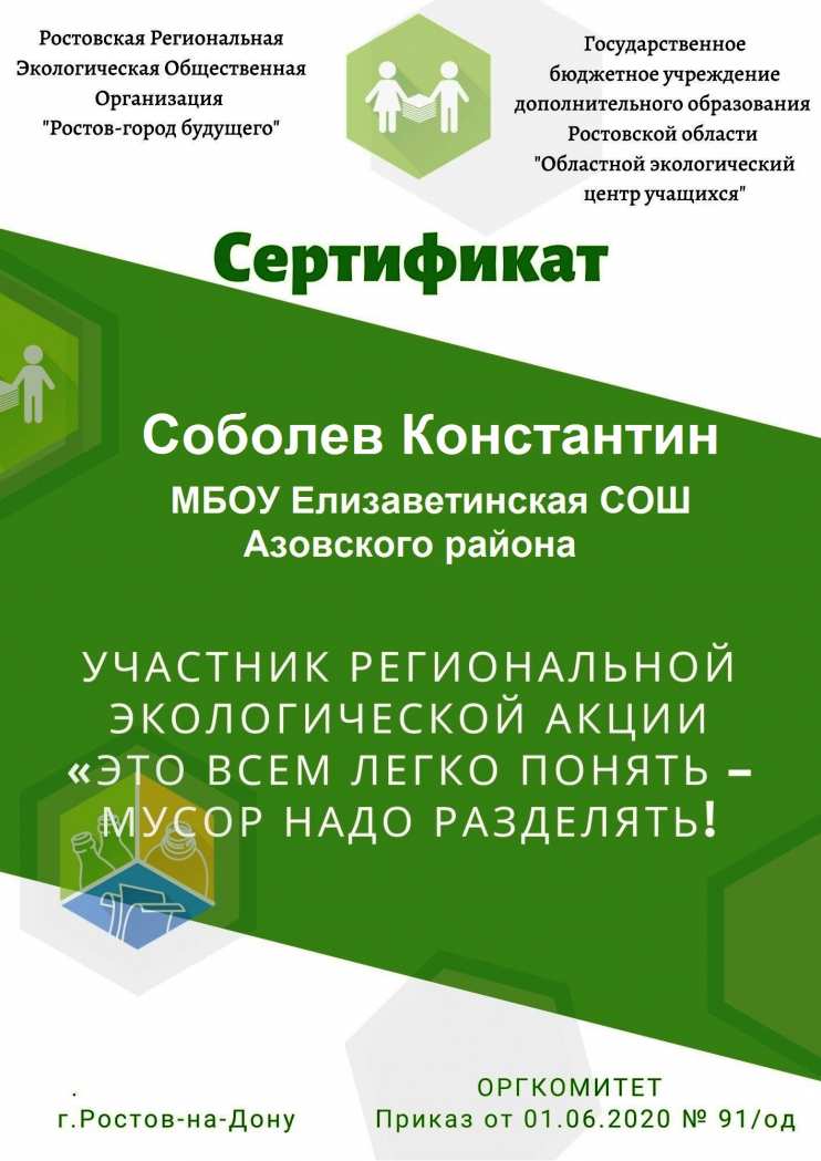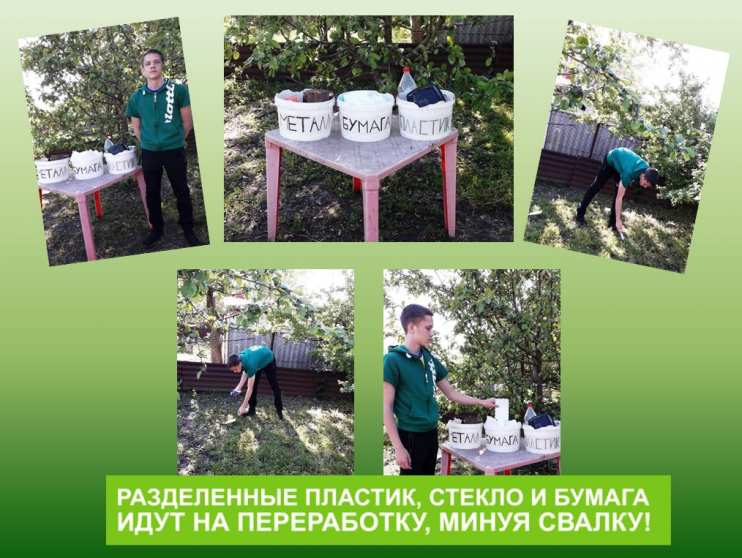 Учащиеся нашей школы Грунская Полина, 2 класс, Гомонова Ирина, 5 класс, Соболев Константин, 8 класс, организовали в домашних условиях раздельный сбор твёрдых коммунальных отходов, тем самым показали, что присоединились к данному мероприятию.