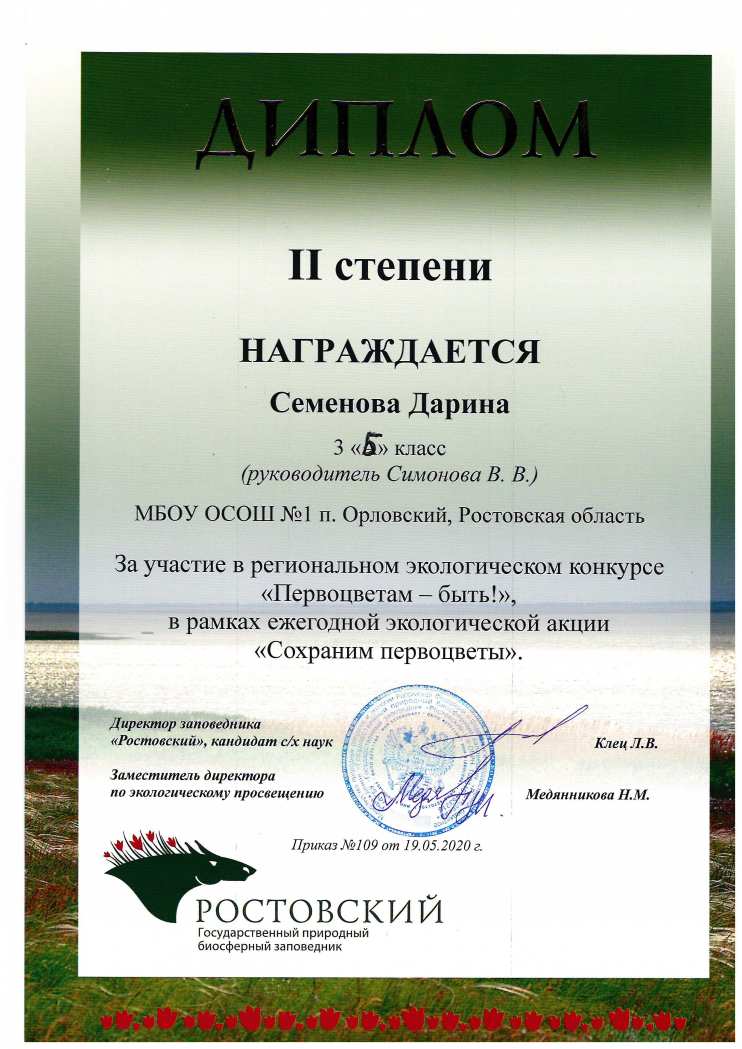 И что очень приятно, что в данном конкурсе Семенова Дарина была награждена Дипломом 2 степени.