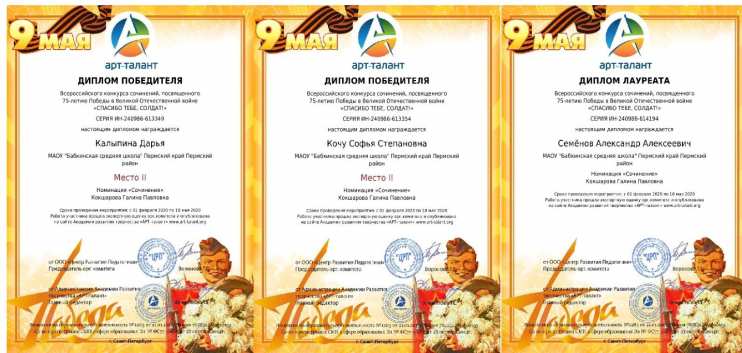 О Великой Отечественной войне я знаю из книг и из воспоминаний своей прабабушки Елизаветы Тимофеевны. Слушая её рассказы, я не перестаю восхищаться мужеством наших солдат, которые не жалея своей жизни, встали на защиту Родины и трудовым подвигом тружеников тыла".