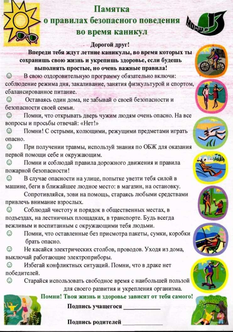 Правила поведения обучающихся во время летних каникул