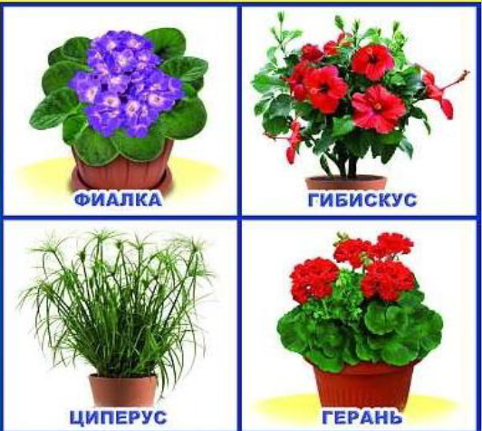 Познакомьте ребёнка с некоторыми комнатными растениями и их названиями, показав им картинки.
