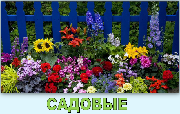 Есть цветы, которые растут в садах, на дачах, в цветниках. Люди за ними ухаживают, удобряют, поливают летом, а на зиму закрывают от мороза. Называются они…
