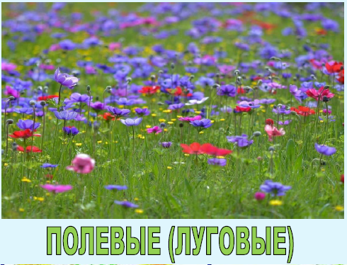 Есть такие цветы, которые растут на лугах и полях. Они вырастают сами по себе, никто их специально не сажает и не ухаживает, поливает их дождик, но они всё равно растут. Такие цветы называются…
