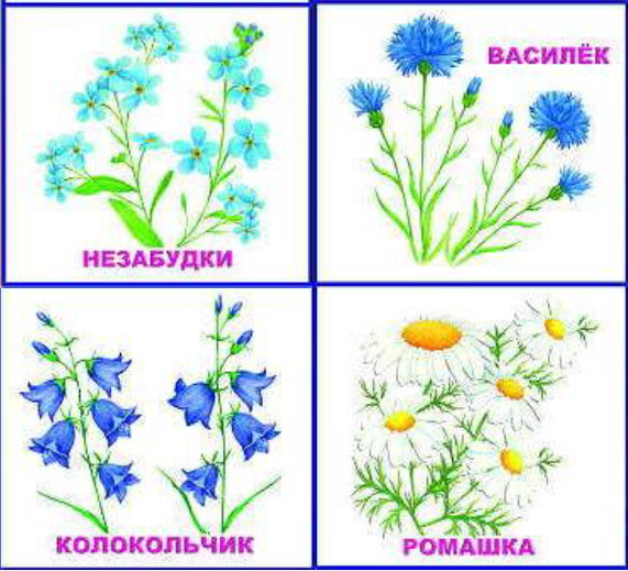 Познакомьте ребёнка с некоторыми полевыми растениями и их названиями, показав им картинки.