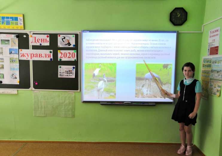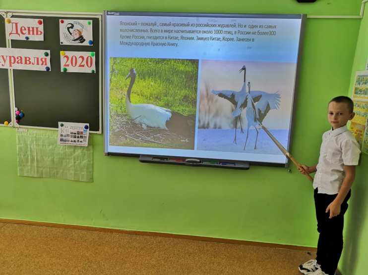 Мы с ребятами каждый год участвуем в данной экологопросветительской акции: проводим классный час, на котором повторяем изученные виды журавлей, гнездящихся как в России, так и за ее пределами. Еще раз акцентируем свое внимание на причинах сокращения численности журавлей и их исконных мест обитания.