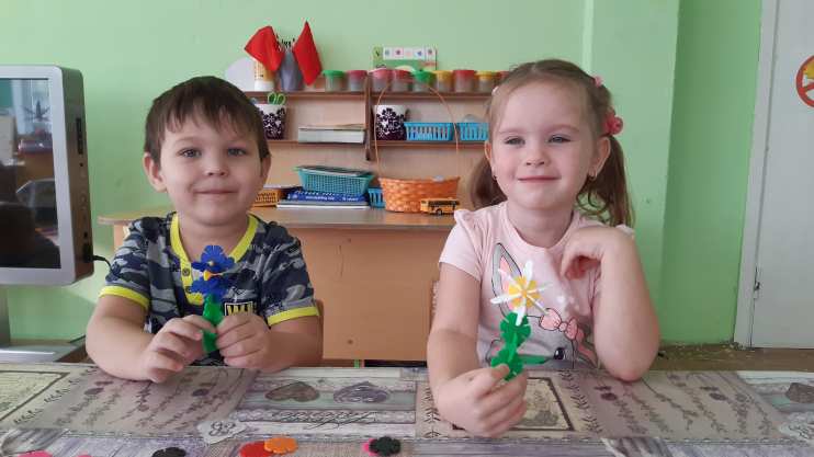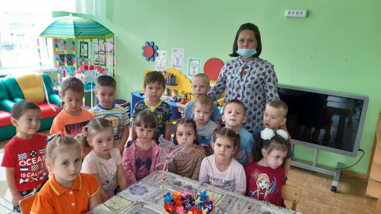 В подарок ко дню рождения нашего любимого города мы с воспитанниками средней группы приготовили коллективную работу "Корзина цветов", используя при этом конструктор "Звездочка".