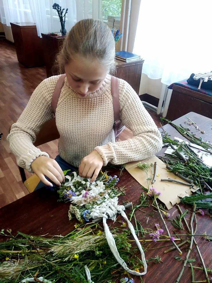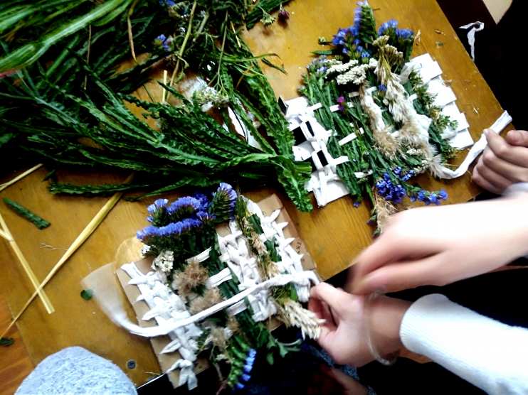 Луговые травы и цветы нас радуют в летнее время. Мы решили сохранить эту память в своих работах. Переплетение луговых трав и цветов, сухоцветы, трикотажная пряжа – всё это подходит для полотняного переплетения, которое является основой нашей работы. Творческое панно, которое сделали ребята своими руками, будет украшать интерьер комнаты и напоминать о любимом времени года, к тому же оно сохраняет запах трав. Наш мастер-класс был интересным и новым, необычным для многих ребят, которые участвовали в этой творческой работе.