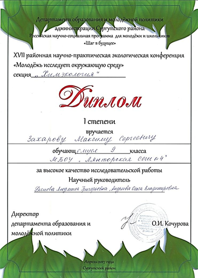 Дипломы и благодарности районной научно-практической экологической конференции «Молодежь исследует окружающую среду». 2016, 2017, 2019 годы.