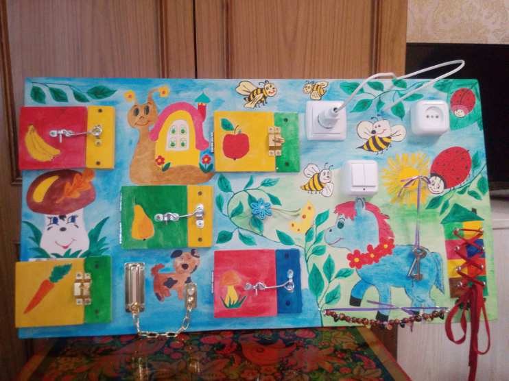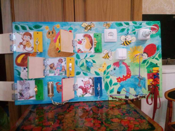 - усидчивости. Малышу трудно сосредоточить внимание надолго, а благодаря бизиборду он может заниматься его изучением до получаса.