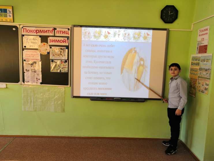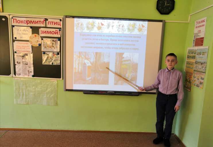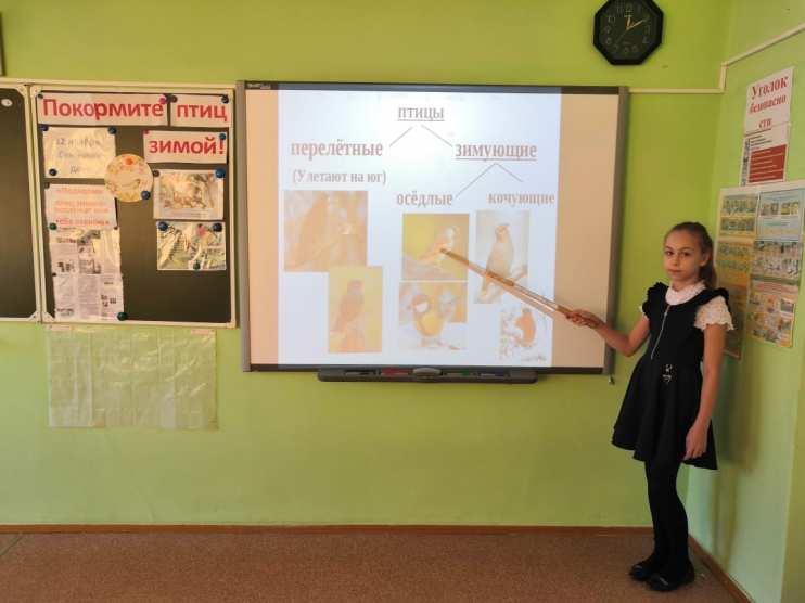 12.11.2020 г. стартовала региональная акция «Покормите птиц зимой». В этот день в 4 «Б» классе был проведен классный час, посвященный началу данной акции. В ходе классного часа ребята повторили информацию о том, какие птицы называются зимующими (кочующие и оседлые) и перелетными, узнали, что по старинному поверью в это время свиристели, щеглы, сойки, синицы и многие другие пернатые перебираются поближе к человеку, чтобы получить еду в предстоящие холодные зимние дни.